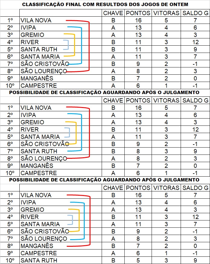 Copa Itatiaia - Tabela primeira rodada Metropolitana